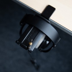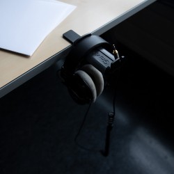 El colgador de auriculares HP HTC 01 B ofrece una forma sencilla de guardar los auriculares o cascos de forma que ocupen poco espacio y estén al alcance de la mano. Es adecuado para estudios, estaciones de trabajo, instalaciones de DJ, locales de ensayo, entornos de pódcast y escenarios en directo. La robusta pinza de acero puede fijarse con flexibilidad a tableros de mesa, estanterías o al borde inferior de plataformas de escenario, y tiene un rango de sujeción de 5 a 45 mm. El soporte de plástico sujeta con seguridad uno o dos auriculares, mientras que dos ranuras integradas permiten fijar cables, enchufes o auriculares de forma organizada. Gracias al tornillo de fijación con protección de plástico, la superficie está protegida. Una solución práctica para quien quiera mantener sus auriculares seguros, limpios y a mano en todo momento.